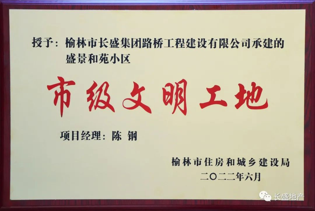 近日,從榆林市住房和城鄉(xiāng)建設(shè)局傳來(lái)喜訊,榆林市長(zhǎng)盛集團(tuán)房地產(chǎn)開(kāi)發(fā)有限公司盛景和苑項(xiàng)目被授予2022年度“市級(jí)文明工地”榮譽(yù)稱(chēng)號(hào)。