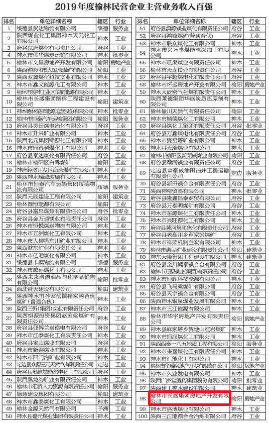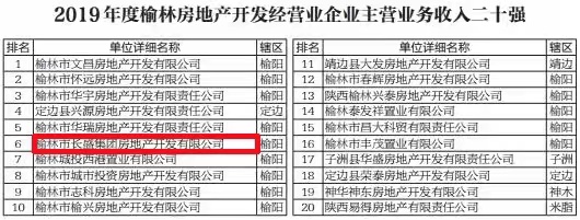 長盛地產(chǎn)公司入榜榆林市“房地產(chǎn)企業(yè)主營業(yè)務(wù)收入二十強(qiáng)”和“民營企業(yè)主營業(yè)務(wù)收入百強(qiáng)”