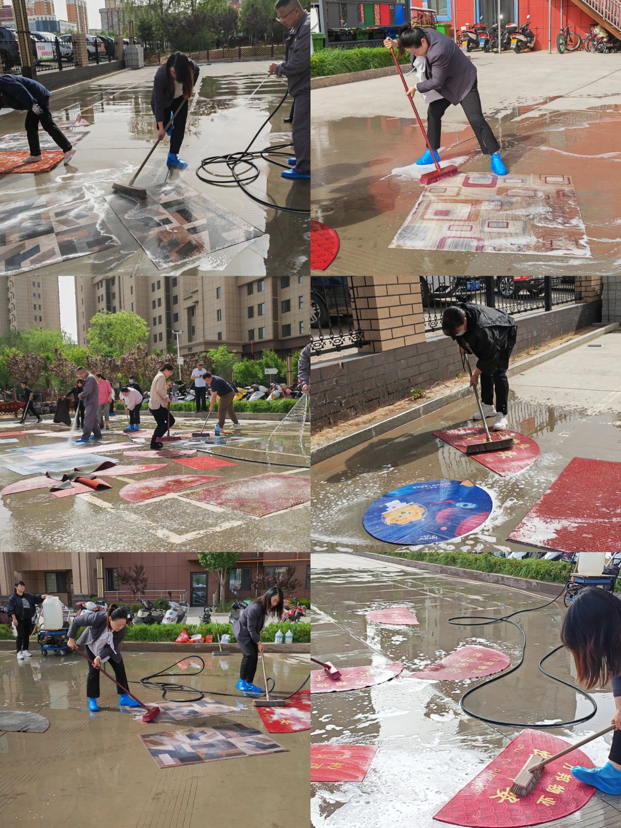2023年5月14日借母親節(jié)之日,萬邦物業(yè)·盛景雅苑物業(yè)服務(wù)中心在小區(qū)4號樓北側(cè)開展“以心煥新,洗凈浮沙”為主題的母親節(jié)活動(dòng)——解放媽媽的雙手, 免費(fèi)為小區(qū)業(yè)主家人們清洗地墊。
