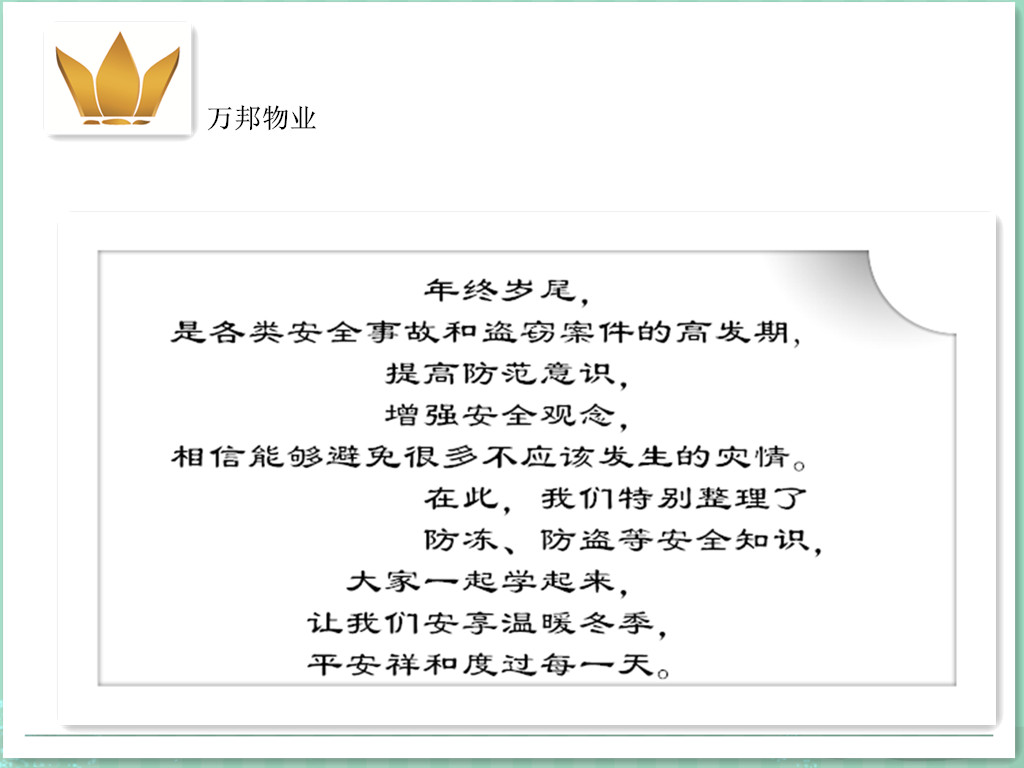 共同做好防火、防盜、防凍的安全預防工作!