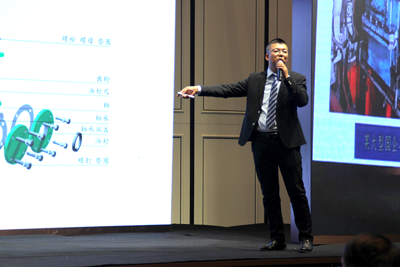 此次論壇的主題是“煤礦機械泄露與磨耗控制發(fā)展”。天地奔牛集團首席復合固體潤滑專家、陜西云泰工業(yè)集成科技有限公司總工程師張軍對機械設備故障的常見問題及原因進行分析,分別對自密封復合固體潤滑鏈輪軸組、自密封長效復合固體潤滑減速機、三機配套專業(yè)化服務做專題介紹。他認為機械故障80%源自設備沒有得到科學的潤滑,傳統(tǒng)的潤滑油液在應用中,由于設備制造的精密度、設備應用環(huán)境的好壞等因素不能有效潤滑,導致設備過早的磨損出現故障。特別是礦機設備生產環(huán)境惡劣,設備的潤滑變得更加復雜,對潤滑劑也提出了更高的要求。